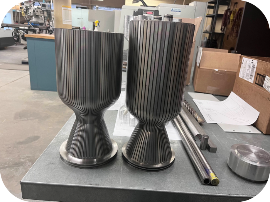 Traditional manufacturing methods. Machined in-house at the University of Akron College of Engineering machine shop.