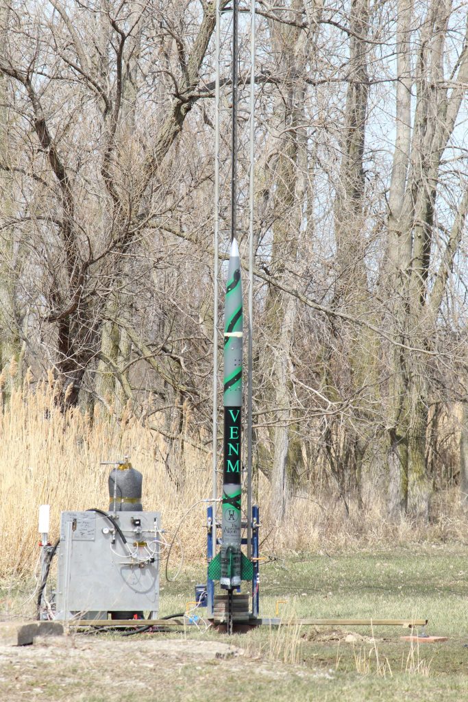 VLV was the Akronaut’s first liquid engine rocket and the first liquid-fueled rocket successfully flown and recovered by a collegiate rocket team in the State of Ohio. The VENM-5 engine was an iterative improvement over the VENM-4 engine with weight optimization and increased tank pressure. This vehicle also showcased the team’s first use of lightweight composite layup in flight. VLV had a nominal flight, reaching an apogee of 10,012 ft and mach 0.9.