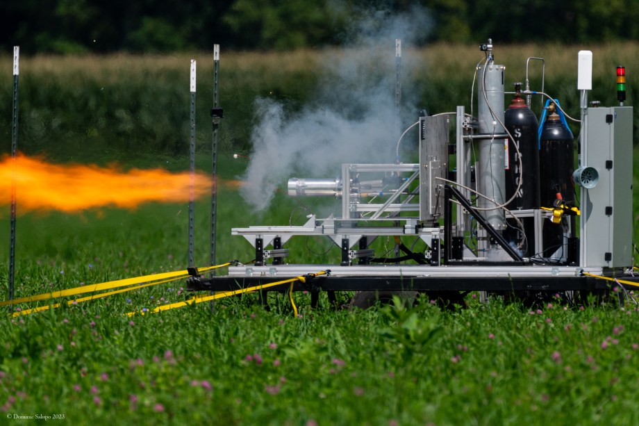 The VSV hot fire of the VENM engine marked the first fully successful engine burn by the team. The injector sizing was improved, and the tank was switched to a larger diameter common piston bulkhead which allowed for a burn of 10 seconds with a maximum thrust of 350 lbf.