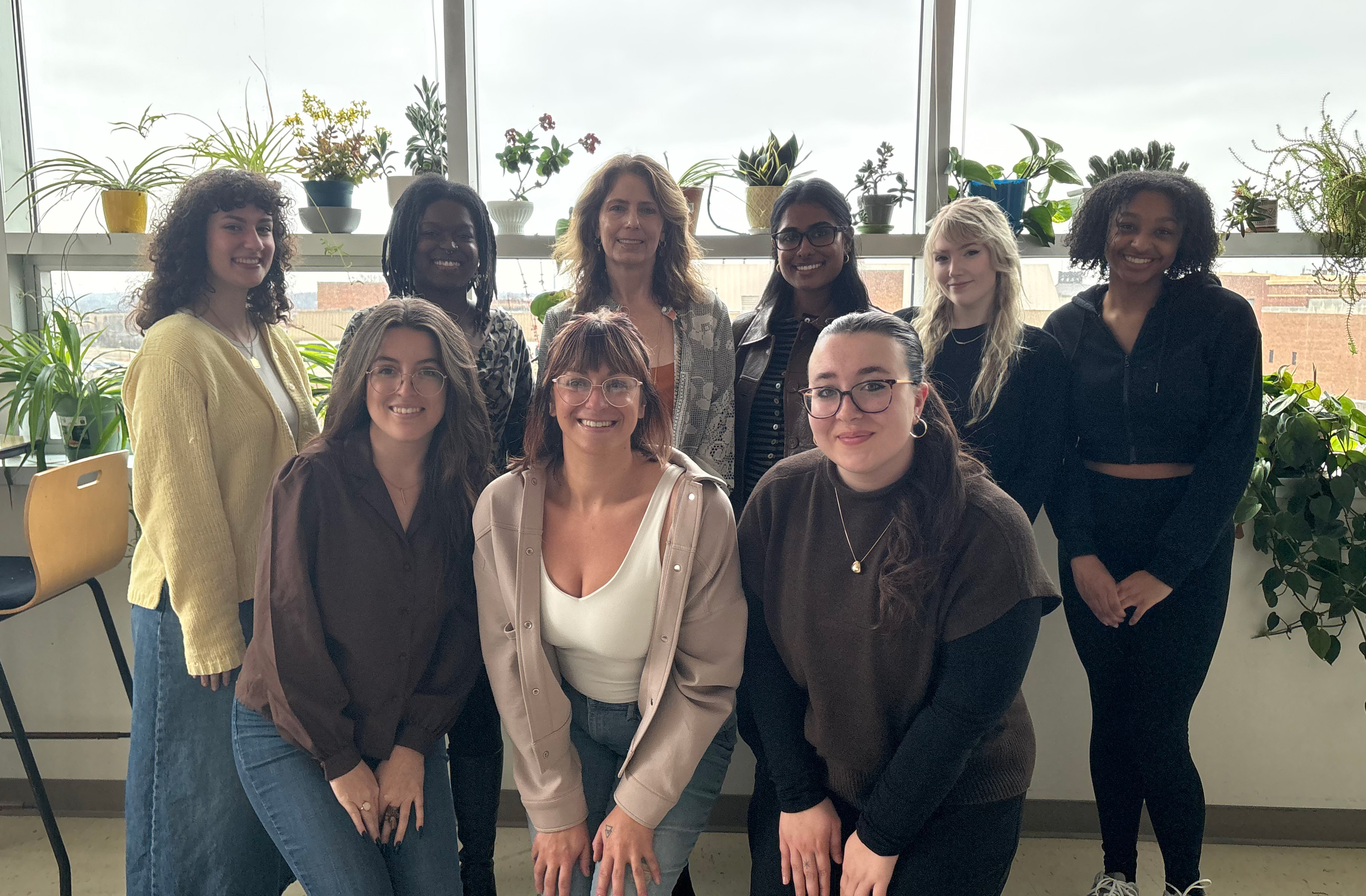 From left to right, Rachel Mirsen, Aliyah Williams, Dr. Dawn Johnson, Briana Joseph, Brittany Riffle, Maya Ball, Armani Shepard, Jessica Cipriano, Katelyn Basinger