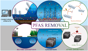 The removal of persistent “forever chemicals” (PFAS) from water is a critical environmental challenge, with adsorption being a key remediation technology. This review examines PFAS adsorption by synergistically analyzing both experimental and computational studies, uniquely considering PFAS behavior in aquatic environments prior to the adsorption event. The analysis highlights how computational methods like DFT and MD simulations provide essential molecular-level insights into adsorption mechanisms that are often inaccessible through experiments alone. The work emphasizes that an integrated experimental-computational approach is crucial for a complete understanding of PFAS adsorption and for designing the next generation of removal technologies.