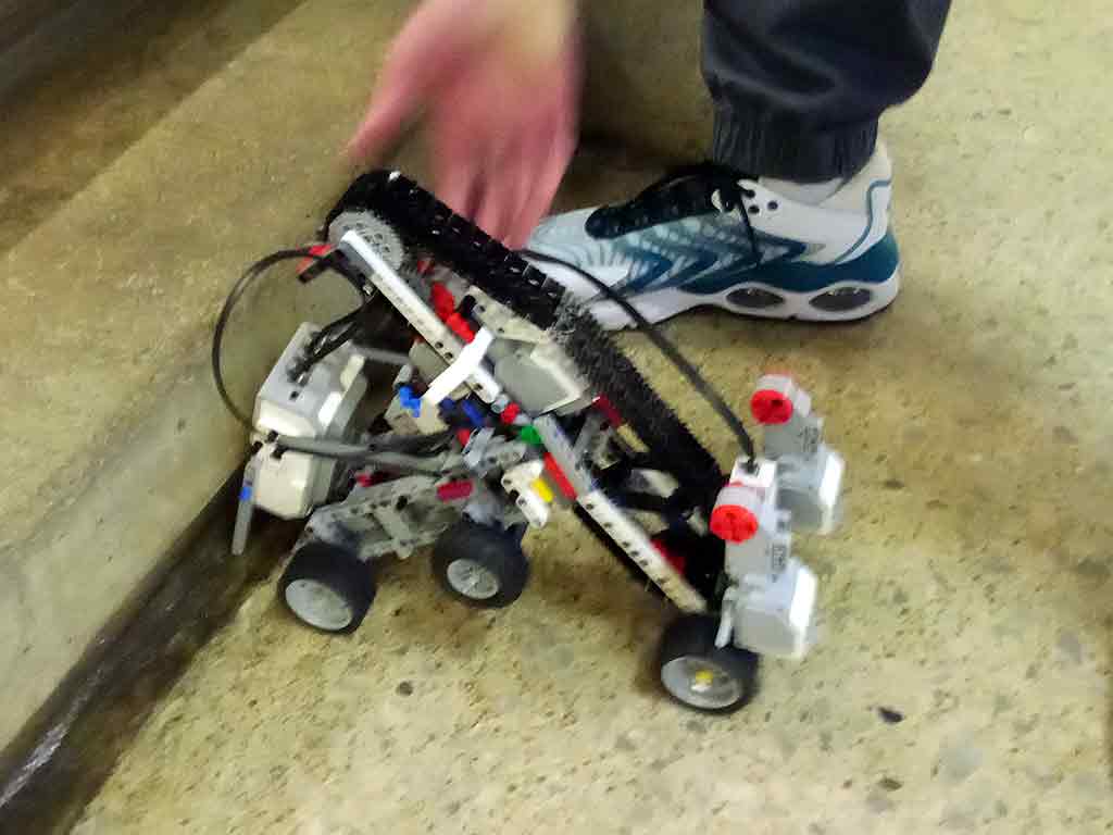 As end of semester draws near in December, Tools for Engineering students prepare for two challenging assignments: building robots that climb stairs and compete in the Battles Bots tournament. The former is particularly challenging as few robots can climb an entire flight of stairs. This leads to interesting, aspiring designs! Robots are built from LEGO Mindstorms kits.