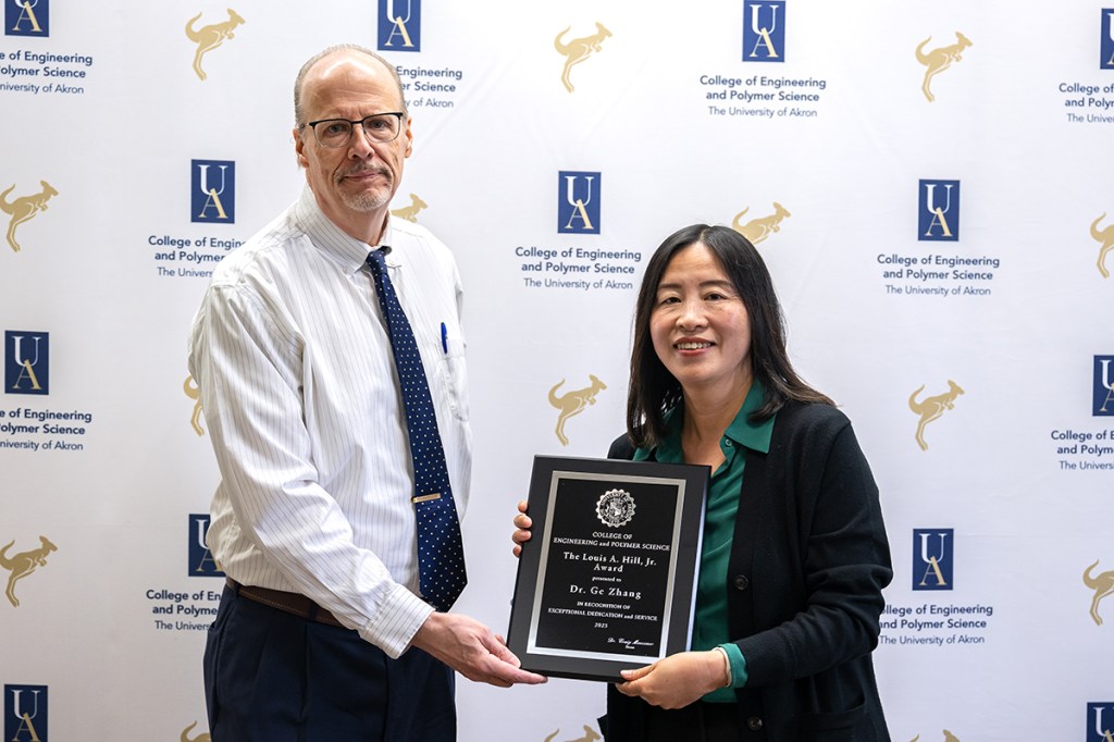 The College of Engineering and Polymer Science awarded Dr. Zhang with the 2025 CEPS Achievement Awards, more specifically, the Louis A. Hill Award.